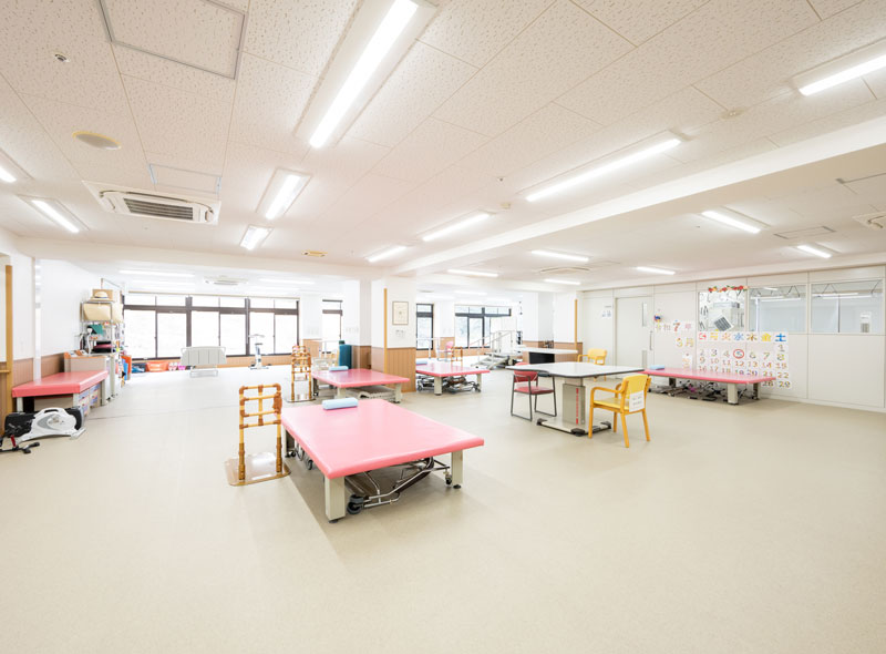 開放感のあるリハビリテーション室にてリハビリを行うことができ、物理療法機器・装具各種・評価計測機器など、さまざまな設備も取り揃えております。
