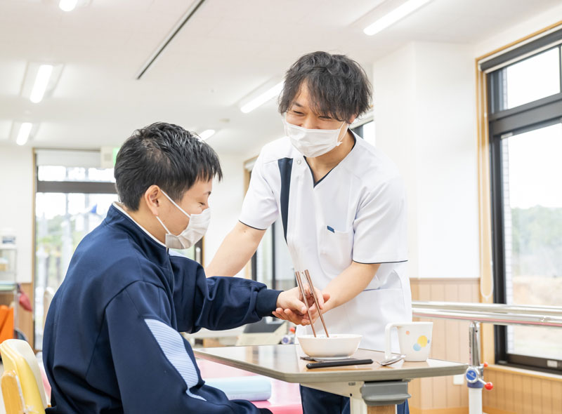 在宅復帰に向けて、個々に合わせたADL(日常生活動作)練習 を取り入れ、ご家族さまに向けて適切な介助方法を学んでいただきます。(例:起き上がり・更衣・移乗動作・トイレ動作・整容・ 調理など)