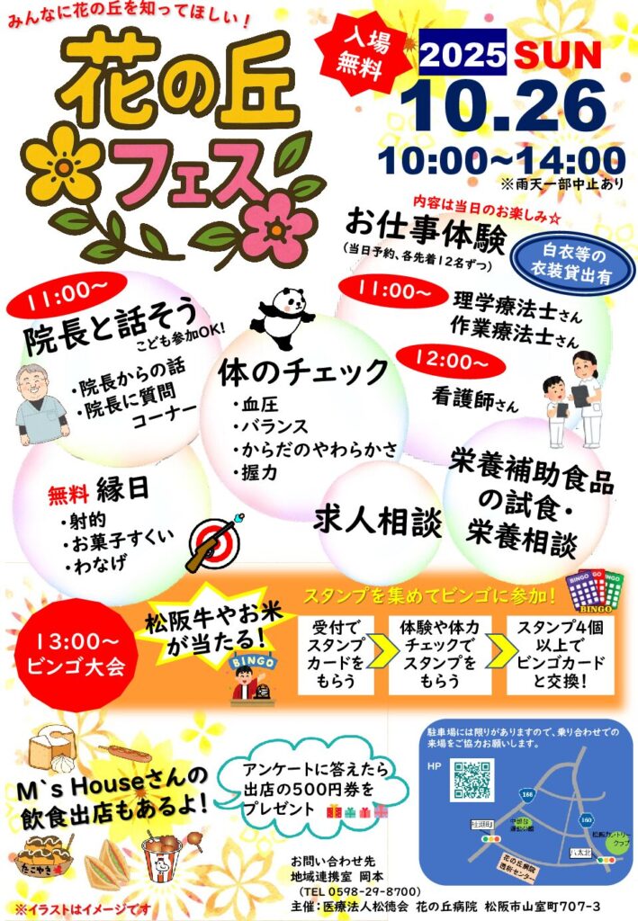 どなたでもご参加いただけます! 花の丘病院に是非お越しください!